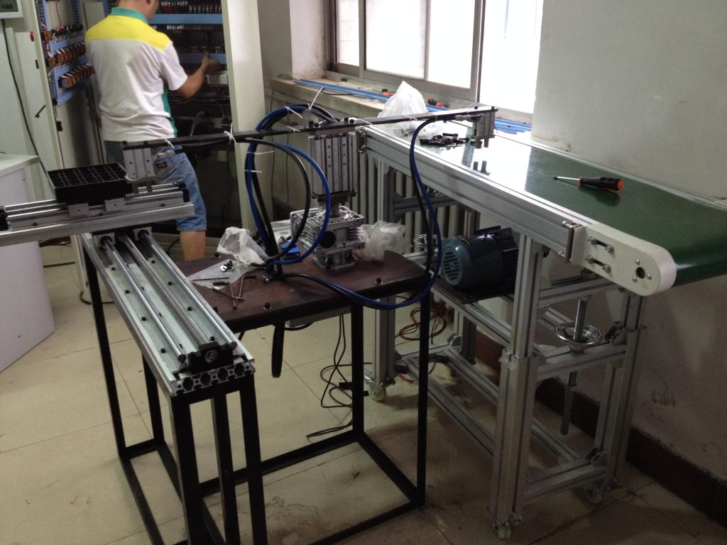 2015、2016年先后两次学校教务处资助完成本科教学自制仪器设备。本实验设备综合接触器继电器控制系统、PLC、变频器、步进电机、伺服电机、工控机、触摸屏等驱动、控制功能,通过上位机软件编程,能够实现对三相异步电动机的启动、制动、调速控制和工件的运输传送,实现机械臂对工件的抓取、阵列放置等组合式多功能控制。完全开放式实验设备便于实现编程、控制线路连接、设备拆装、故障检查,具有较好的推广前景。