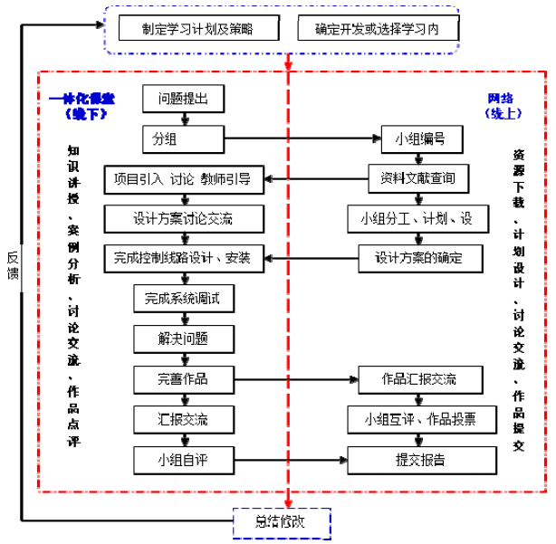 图1 混合教学模式实施方案、思路 3)加大“创新创业”能力的培养 2014年,国家提出“大众创新、万众创业”的发展思路,而大学生将是这一工程的主体。因此,要进一步优化人才培养方案,从理论教学、实践训练等方面作出相应的调整,设置精深的“技术+特色+创新”专业方向课程,构建模块化知识体系;同时还需营造创新文化,激发学生参与到创新中来;需要多邀请本行业、领域的企业家和成功的创业者来到学校开办讲座,同学生交流,让企业家的精神在本专业学生的心中发芽。 2. 改进课程教学内容 我校机械电子工程专业目前虽然已经制定了较合理的专业培养目标和培养方案, 培养了结构合理的师资队伍,形成了较好的理论和实践教学模式,但是与CDIO工程教育标准的要求相比,在培养方案、教学体系、教师队伍建设及教学效果评价机制等方面,仍然存在一定的差距。现有机电专业课程体系存在专业特色不明显、不同课程之间存在重复或相互冲突的地方等缺点。因此要依据CDIO工程教育理念,借助校企合作平台,全面地进行机电专业人才培养模式的探讨,建立符合CDIO工程教育标准的机械电子工程专业实践教学体系。 1)理顺课程体系结构,构建基于大类的课程群架构 目前的专业培养方案包括的核心课程为:机械制图、理论力学、材料力学、模拟电子技术、数字电子技术、C语言程序设计、单片机原理及应用、自动控制原理、机电传动控制、传感技术、机械原理、机械设计、机械工程测试技术、机电一体化系统设计、互换性、工程材料等;主要实践环节为:社会实践调查、金工实习、电子电路实训、工程制图实践、创新实践、生产实习、毕业实习、毕业设计(论文)、PLC与组态技术综合实验、测试技术与传感器综合实验、单片机综合实验、自动化生产线认知实践、机械设计基础课程设计和机电专业综合课程设计等。 针对目前培养计划中,存在的相关核心课程内容交叉、重叠,课程之间衔接与分工不够明确,课程实践教学环节仍显欠缺等问题,本着注重能力培养、以机为主、光机电及信息技术有机融合的原则,对系列核心课程进行逐步整合和优化,构建机械类、电子类、信号与传感类、机电一体化等四大类课程群,建立以课程群建设为目标的课程建设体系结构,促进教学质量的稳步提高。 2)优化整合课程内容,促进课程群间的衔接与协调 注意专业知识及内容的整体性和相关性,进行课程内容的优化整合,注意分工和衔接,避免重复,努力提高核心课程的系统化和综合化程度,充分利用有限的课程和学时满足日益增长的专业知识需求;适当减少课内讲授学时,增加实践学时和课外第二课堂学时,结合教学方法和手段的改革,大力运用现代教育技术,提高教学质量和收益,为学生的全面发展和个性发展提供必要的时间和空间。 3)构建CDIO模式下的机电专业课程体系 按照创新创业型工程师培养目标要求,遵循“知识学习与能力培养并重”的指导思想,以专业能力和行业需求为背景,构建“以岗位技术需求为导向、工程能力为目标、项目实施为主线”、将理论学习、实验实践教学、项目实施、实习及实训有机融合的一体化课程体系。 整个项目体系包含紧密关联的三个层次的项目:包括以单门课程(或两门课程联合)基础知识应用为主旨的三级项目,基于团队的以多门课程知识有机融合为目标、能够充分体现构思-设计-实施-运行整个过程的二级项目,以专业知识综合应用与创新为主旨的一级项目。 三级项目设置于专业基础课和专业课程内,也可以作为一级项目或二级项目的子项目,多数项目为教师从其科研项目中提炼的,旨在加强学生对该门课程核心知识或技能的理解和运用。二级项目旨在加强学生专业核心能力的培养,通常将多门专业核心课程内容相结合,并与三级项目相关联,是多门课程联合设立的基于团队的项目。二级项目和相关联的每个三级项目具有独立的研究设计内容、考核节点、考核评分标准,设计报告和演示汇报等。具有比较充分的项目实施时间,可以构建一系列水平较高并基于团队的专业研究项目,学生可以完成一个项目的构思、设计、实施、运行( CDIO) 的整个或主要过程。 新的培养方案课程体系中包括两个一级项目,即创新与特长教育和毕业设计。创新与特长教育一级项目设在第一学年,旨在使学生初步建立起“机械工程”的概念,增强对机械工程的兴趣;毕业设计一级项目主要是让学生参与教师为企业开发的新产品或关键技术改造的项目,或者是企业的下一代产品研发。培养学生综合运用专业知识和技术(包括人文社会科学和工程管理知识) 解决工程问题的能力和创新能力,培养学生综合全面的能力与素质。 三个层次的项目前后紧密关联,与各个教学环节紧密衔接,环环相扣,并从课内延伸到课外,从易到难、从宽泛到专业分层次进行,涵盖了专业基础知识和各专业方向的核心知识体系,整个项目式体系的实施过程就是一个学生知识学习与能力培养的过程。