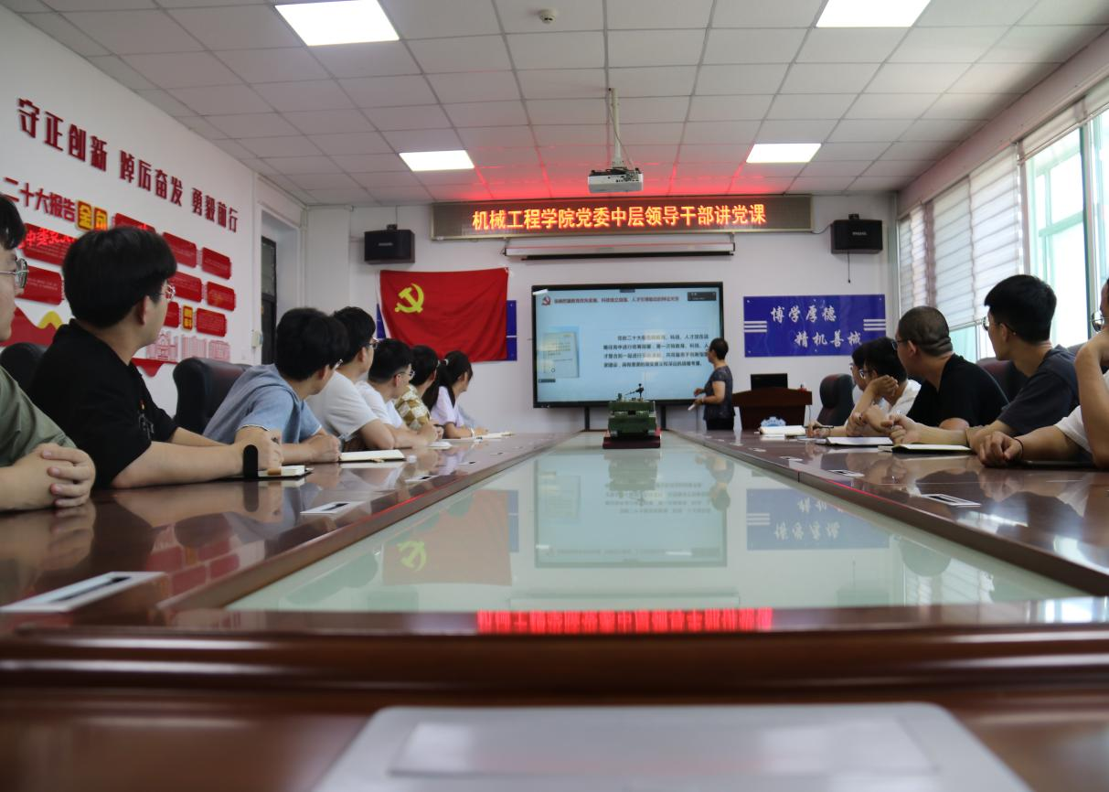为学习贯彻习近平新时代中国特色社会主义思想主题教育,筑牢思想根基、强化理论武装,2023年7月16日下午15:00机械工程学院党委在德怀楼410会议室开展中层领导干部讲党课活动,院党委副书记李秀玲同志向学生党员讲授了“加快建设教育强国、科技强国、人才强国”专题党课。
