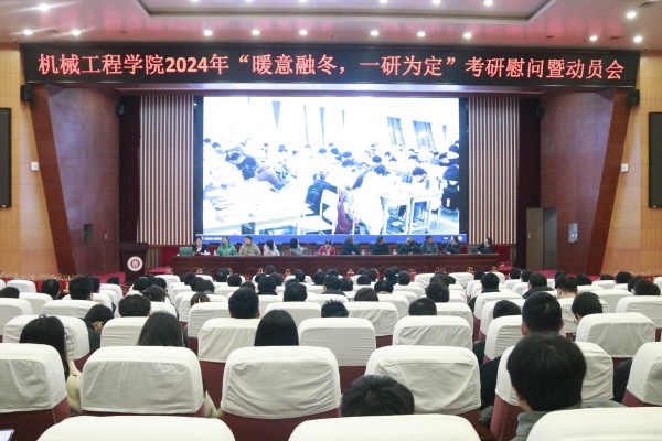 为提振备考信心,激发考研斗志,鼓舞考研士气,2024年12月5日上午10点,机械工程学院于图书馆五层举办了“暖意融冬,一研为定”考研慰问暨动员会。院党委书记孙旭东、党委副书记李秀玲,全体辅导员、班主任及2021级考研学生代表参加此次会议,会议由李红丹老师主持。